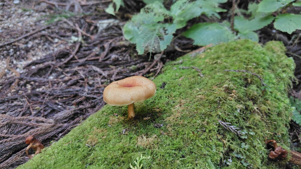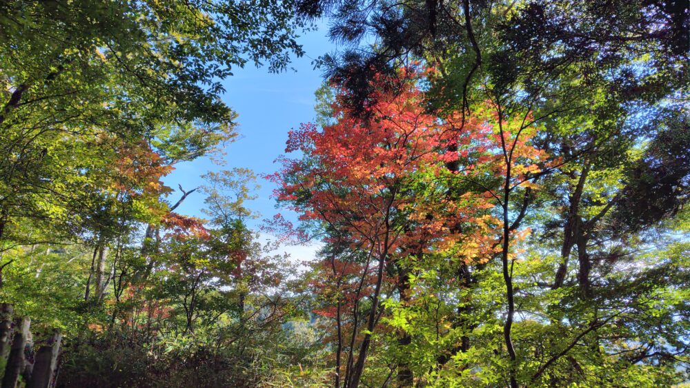 降り路にほんの一部赤く染まったものがあった、貴重な秋色に思わず足を止めた。