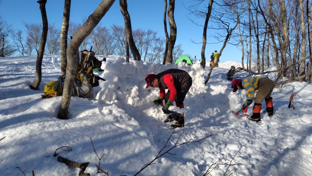 テントの四隅を雪で更に固定補強して7時出発