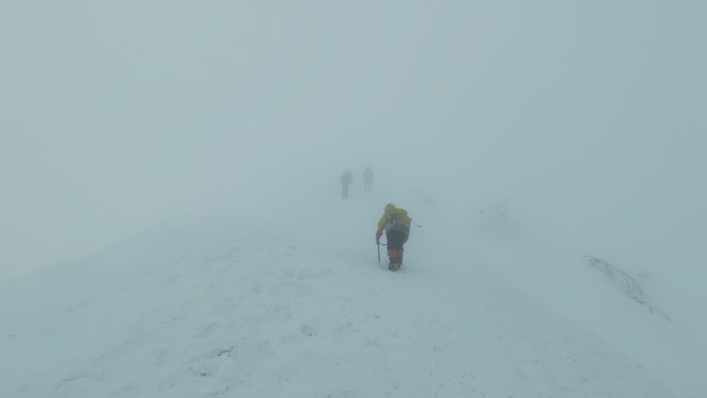 前荒島岳を過ぎた辺りでは前を行く仲間と少し距離が空くとその姿がかすれるほど