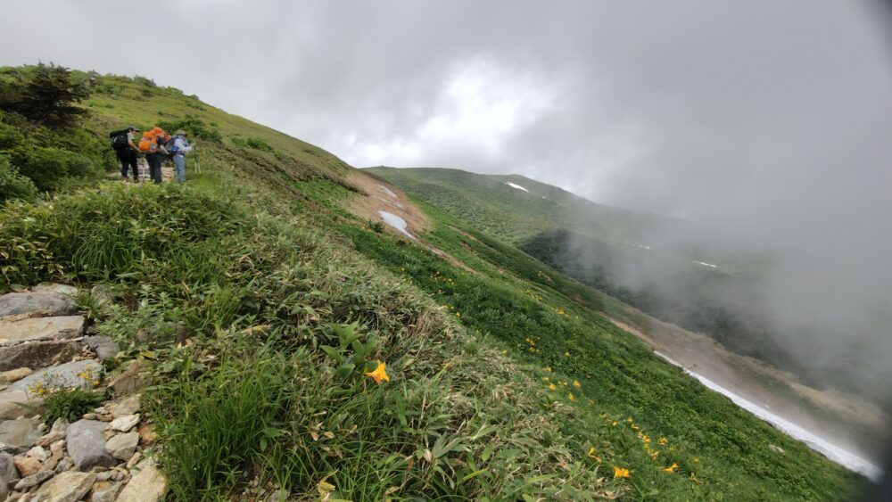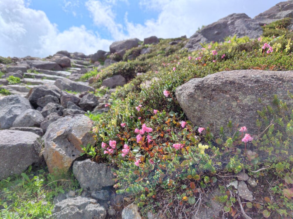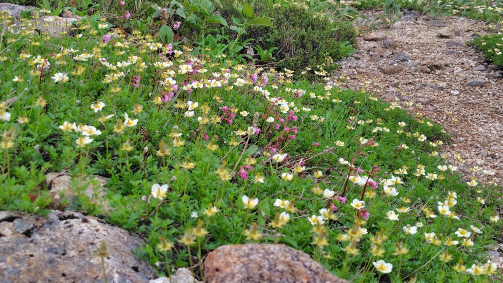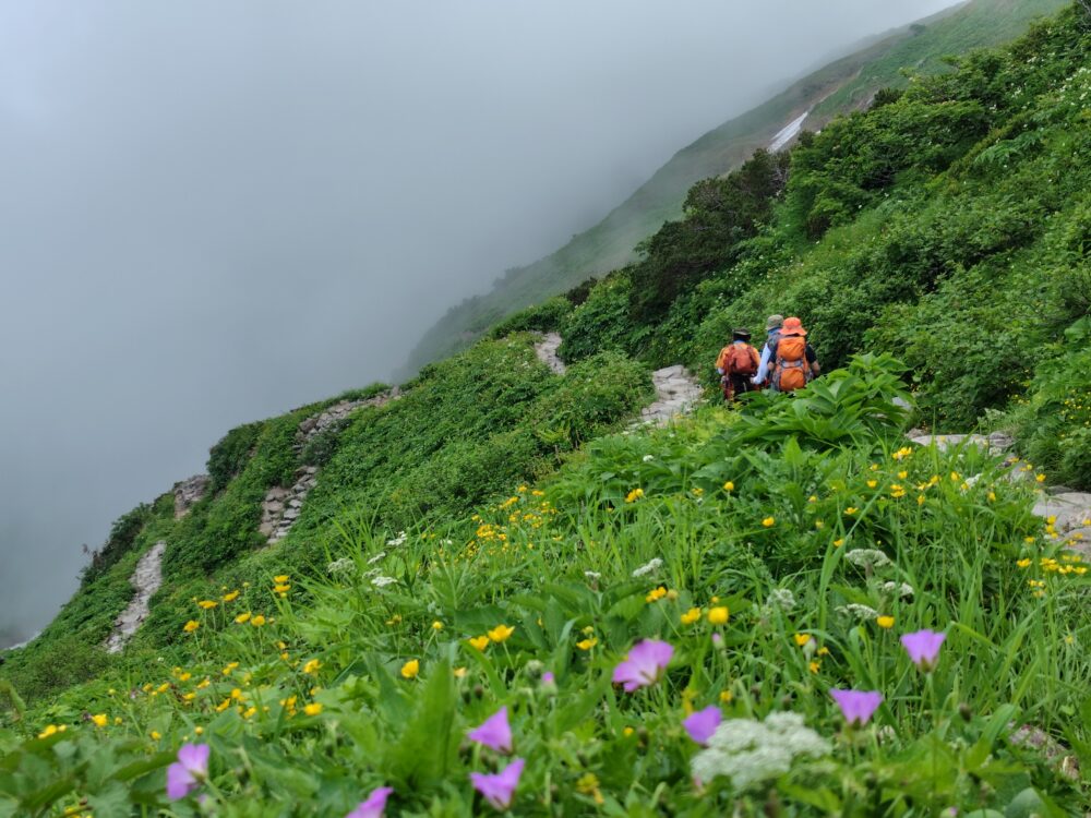 やがて傾斜も緩み、雪解け後からはお花畑のオンパレード