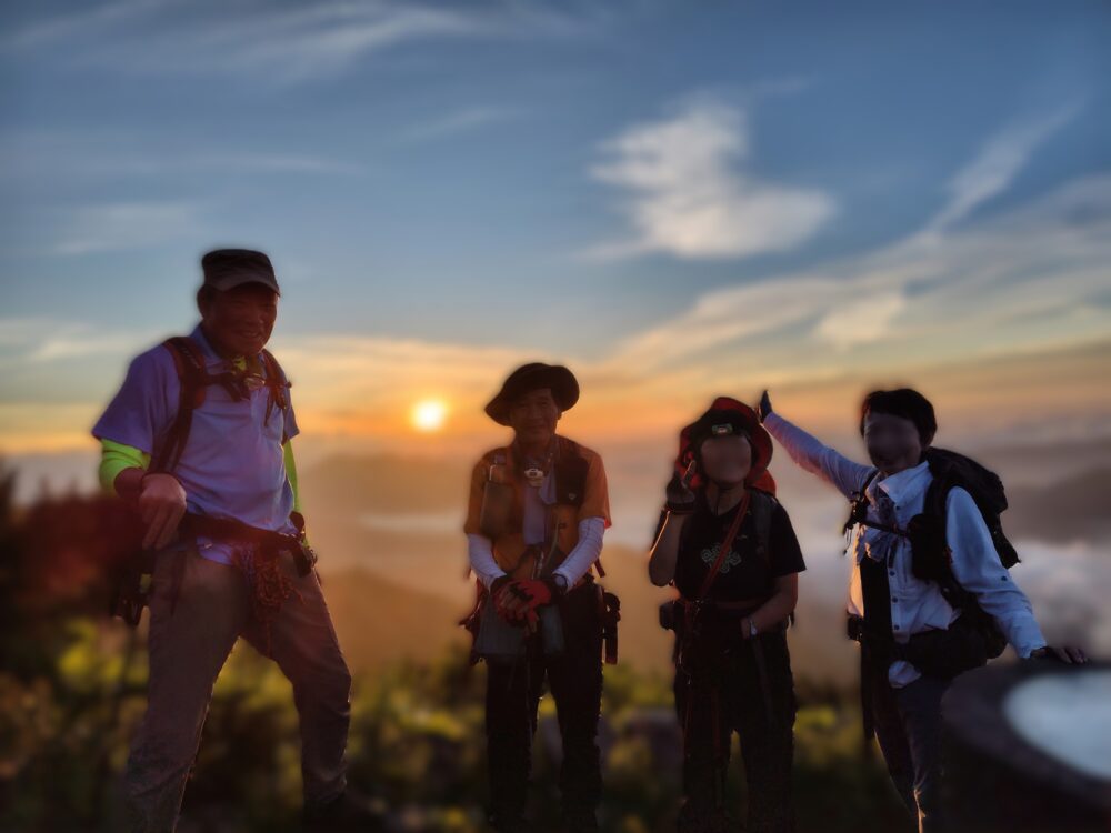 偶然にも、行き帰りの道中、南竜天場、室堂、展望台のご来光、連盟の仲間と巡り会い楽しいひと時を過ごした。