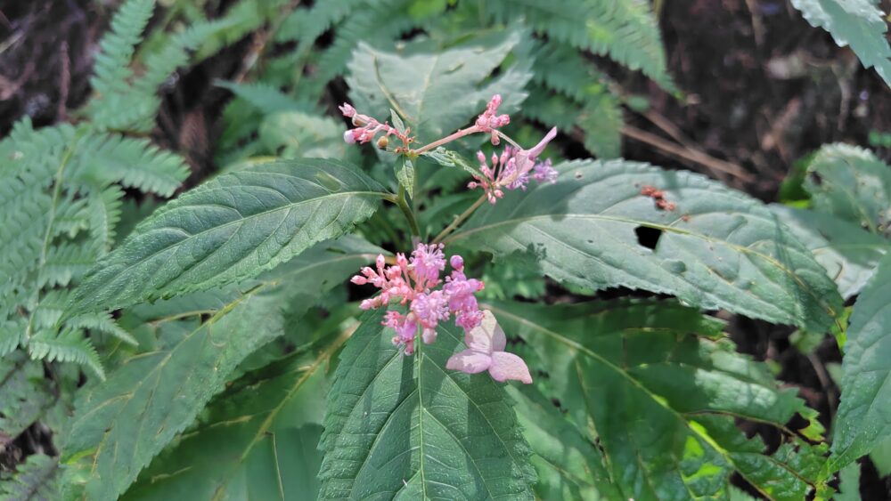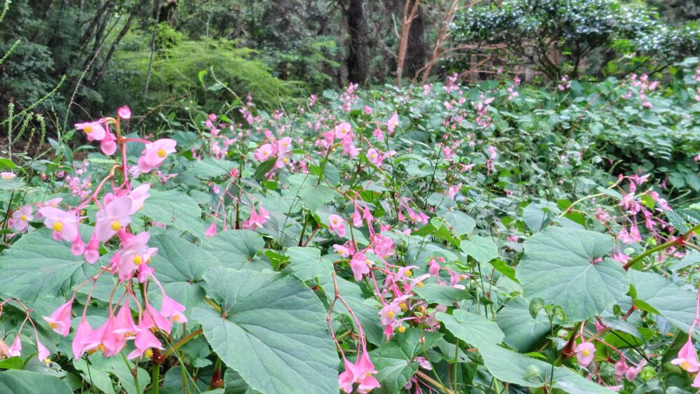 天候がようやく秋らしくなってきた日曜日、出発が遅いせいもあり登山口付近にある6つの駐車場はほぼ満杯状態、秋海棠咲き誇る一角にある駐車場にようやく1両分のスペースを見つけて、尾根筋のルートにとりつく