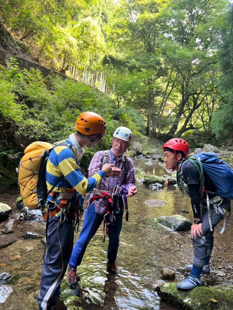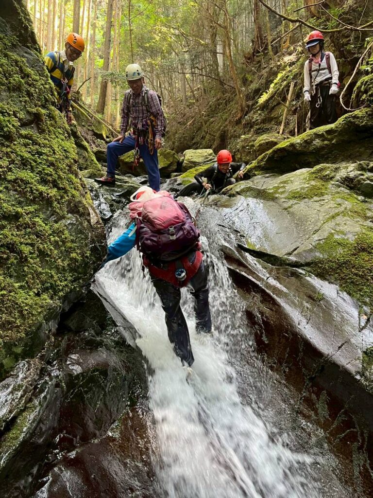 ロープはほとんど、使わず、AHさんSL先頭のリードでお助けシュリンゲで後続をサポート、助かりました。大きな滝は巻いたが、「ラスボスの滝?」と言われてる滝は下部立っていて上部のつるつるのスラブ、ナメの滝。上からハンマーをつけてロープ投げて下からTRで登ると楽しそうである。次回はぜひ。