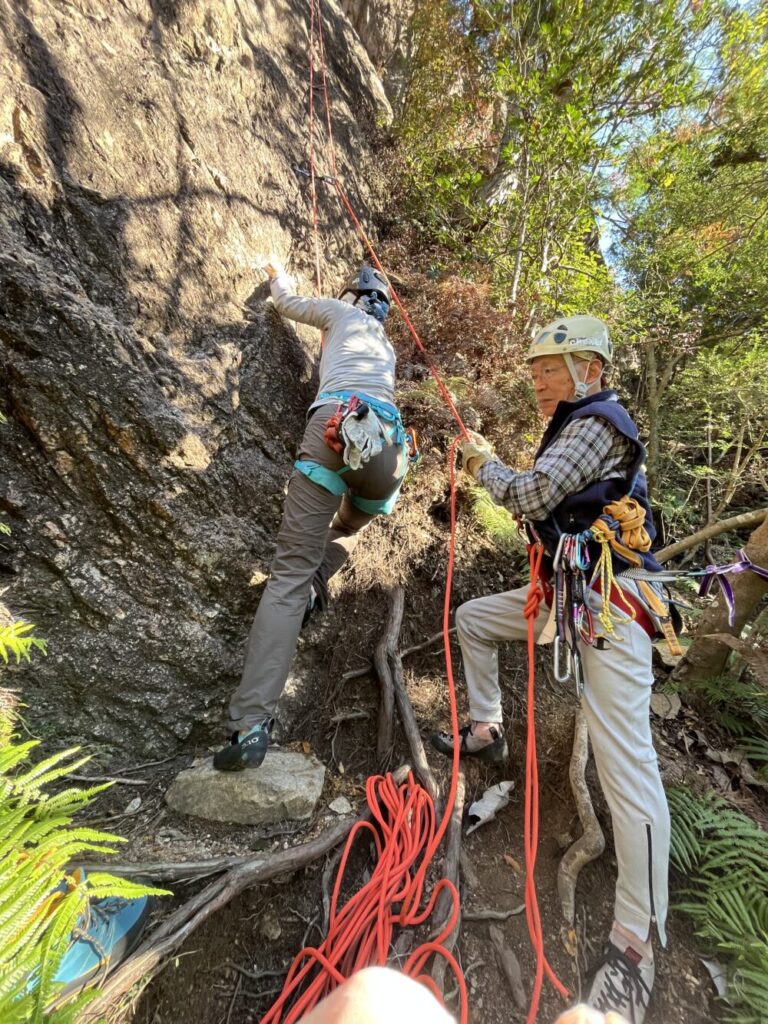 今年は中止の多いY谷であったが天気、気候よく快適なクライミング岩場は貸し切り状態でした。