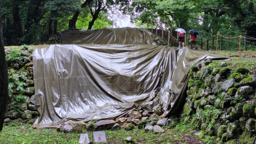 笠木が落ちて割れてしまった鳥居 七尾城本丸跡