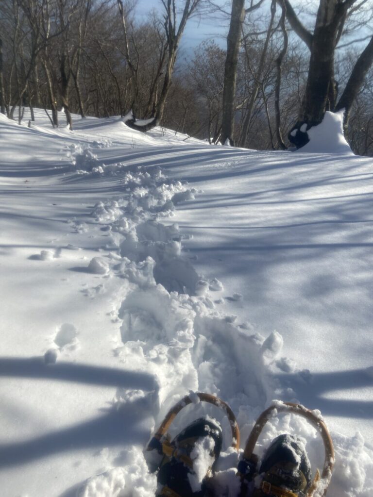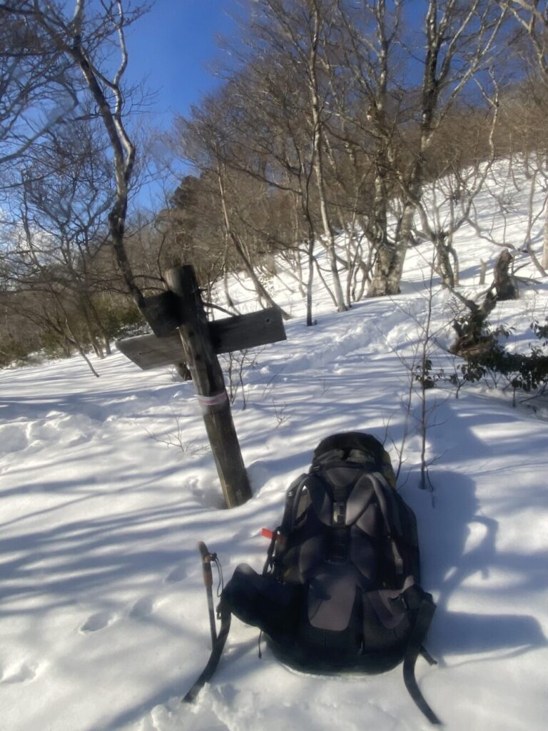 二日目、やはりトレースのない尾根道を北比良峠めざし進む、結局、大津ワンゲル道入口から北比良峠に至るまでは全く人に会うこともなく、後ろには私のトレースのみ